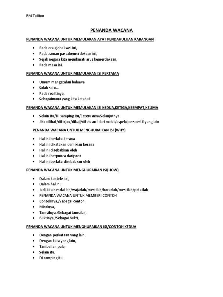 Kertas Kerja Bi Bina Ayat Pdf Penanda Wacana Pmr Docx Penanda Wacana I Penanda Wacana Untuk Memulakan Karangan 1 2 Pada Era Globalisasi Ini Dalam Meniti Arus Kemodenan Course Hero Bahasa Melayu Dalam Era Globalisasi Pdf.